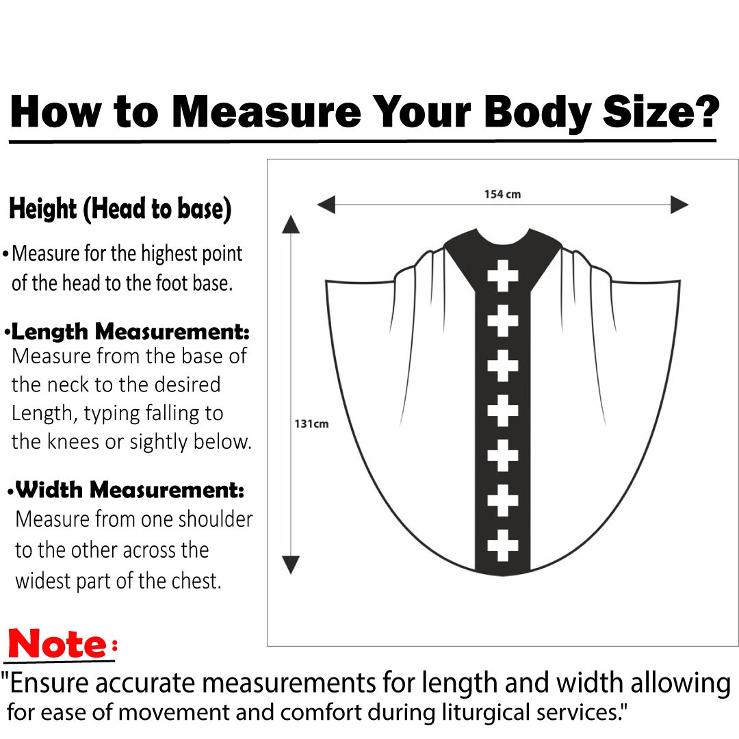 At Vestmentshop.com, we offer a precise sizing guide for our clergy robes and cassocks to ensure a comfortable and tailored fit. The chart below provides key measurements for height, chest, waist, sleeve, neck, and shoulder dimensions.